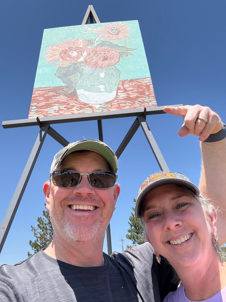 Just when we thought Kansas was getting a bit on the boring side, WHAM! World’s biggest easel and world’s biggest Van Gogh! And only 300 miles ahead in Goodland, KS! Oh baby, it’s ON!