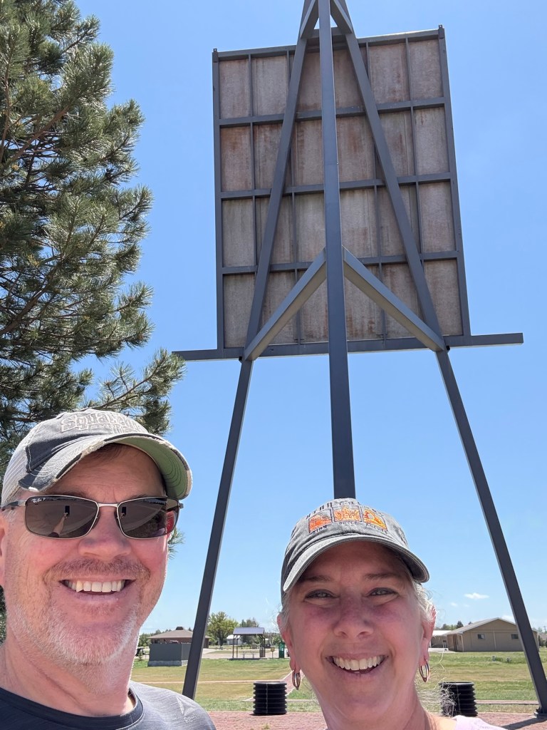 After departing stormy Fayetteville and our powerless campground, we proceeded through Oklahoma to Tulsa where we hung a right (Right Turn Clyde – This was Ben’s contribution) and headed north through Wichita, past the signs for Hutchinson KS, the first stop on our married- around-the-world journey nearly 30 years ago, then we went on to Salina, KS for a night and then Goodland, KS.
