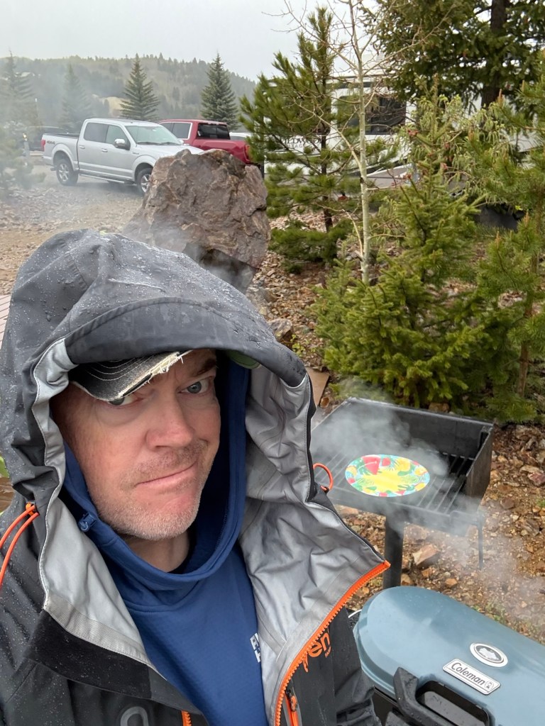 While we had a beautiful day with David and Katie and Peter, the day before, in Denver and then a quiet late afternoon up in the hills, we knew a fairly major storm front was moving through the area. Of course it was. Cold air temps, non stop drizzling rain, periodic hard rain, and as the temps dipped into the 30’s that evening, stuff that looked suspiciously like sleet, hail, and snow. With weather like that coming down on us, Ann was in for some rough sailing on our final day in Denver. So, it was with limited other options that Sunday was declared an inside day at the Central City campground. Ben fiddled around with indoor maintenance projects that are just an accepted part of traveling across miles of highway in a thin metal tube. Ann ventured outside of the camper exactly once, and then, like Punxsutawny Phil, saw the weather conditions, felt the 40 degree air, and quickly retreated back inside the cozy Airstream with a mildly reproachful glare directed at Ben.