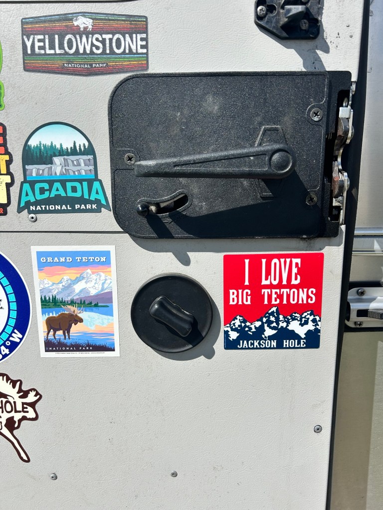 According to Google, at least, but our research hasn’t been very thorough. We think we found proof of this theory in one of the local gift shops though. Ann gets to pick most of the stickers for our Airstream door collection and the Moose sticker is her pick but Ben saw the “I Love Big Tetons” and he just had to have it to prove the boob theory (🙄).