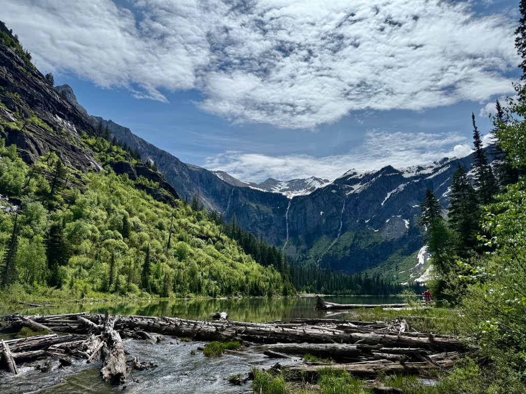After going through the west gate of Glacier NP, and after we passed the visitor center intersection, we were officially on the Going-To-The-Sun Road, the East – West road that crosses the entire park. Once again, an absolutely gorgeous drive, which was made even better as Lake McDonald came in to view. We were absolutely floored by the majesty of the wide, glassy smooth lake, with snow capped, heavily wooded mountains surrounding it on all sides. We have to come back here at sunset to get a pic! Will try sunrise as well, but the sun comes up at 5:36 am this far north, and we are definitely adjusting to Mountain time, so we shall see. Ben does love his sunrise pics though, and Ann may be a little grumpy in the morning, but she’s typically down for whatever, so we will likely have an early morning tomorrow.