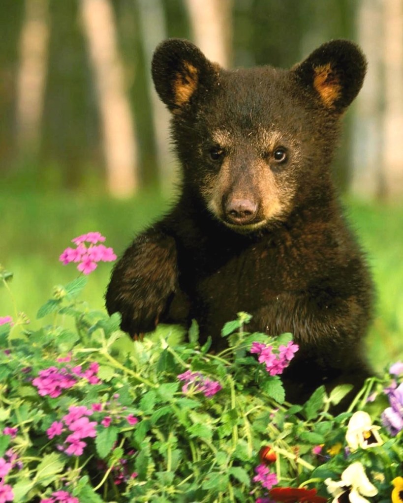 Ann was trailing a few steps behind Ben, when to her right, in a little opening in the underbrush, there were some cute little tan outlined eyes, a cute little tan outlined mouth, a plump, fuzzy fur body, about the size of a medium sized dog, but with short stubby legs and sharp little claws. A black bear cub, just standing there, within 2 feet of Ann, watching us go by.