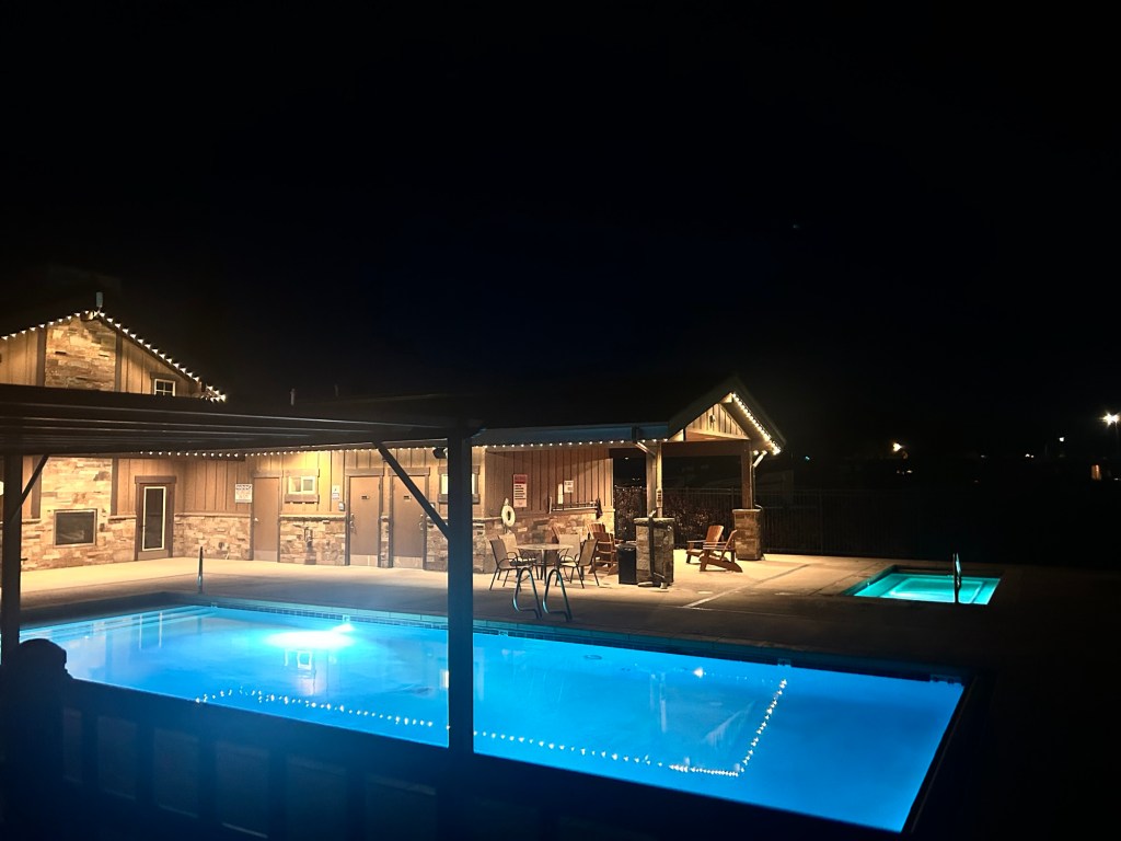 Once it got dark, we snuck off to the “adults only” hot tub area in the RV park. We felt the need to investigate what exactly “adults only” meant. We’re still kinda new to the RV park/resort thing, so we’re still learning about all the little intricacies and subtle, unwritten details about campground etiquette. We were really hoping “adults only” just meant no kids allowed, but we quietly feared that it might mean suits and trunks were optional. You don’t always find the sexiest age group, nor body type hanging out at the RV pool. No offense to our fellow RV park hanger outers. These scenes are not typically Miami spring break type of scenes. The truth hurts lol.