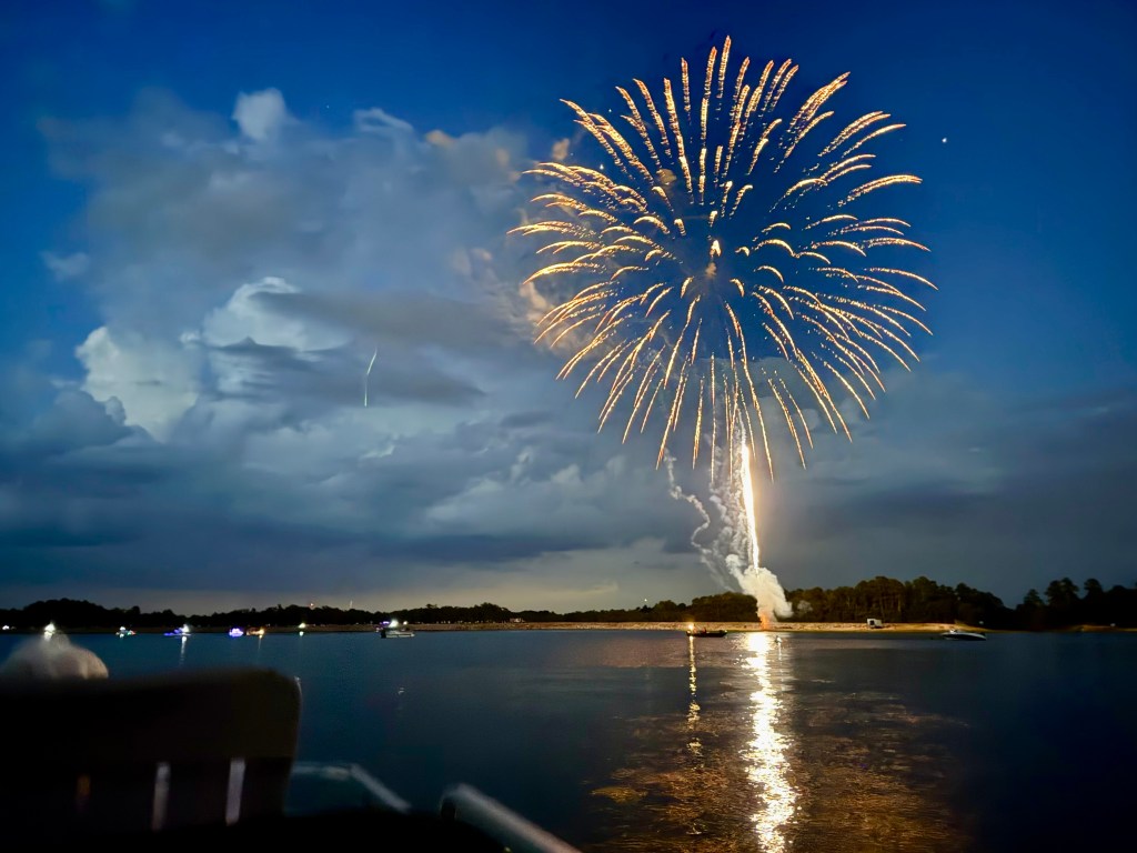 The evening of July 4th, we went over to the real deal Hot Springs Village fireworks show and watched from the water on a friends boat, and it was one of the best fireworks shows we have ever seen. Especially the finale! The whole show was set to coordinated music ranging from Toby Keith to of course the Star Spangled Banner. Really a well done show, other than a couple of unintentional grass fires by the shore.