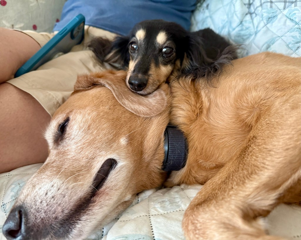 Charlie and Bailey were fantastic travelers on their first time back in the Airstream since early May. They rode quietly in the backseat, just content to be part of the herd again. It was so massively helpful and thoughtful that Ben’s folks wanted to dog-sit while we made the big loop, and the dogs really had a great time there. Not surprising, since the dogs have spent most of their summers in Arkansas. They have to do a lot of varmint hunting and guarding to make up for the time they aren’t there.