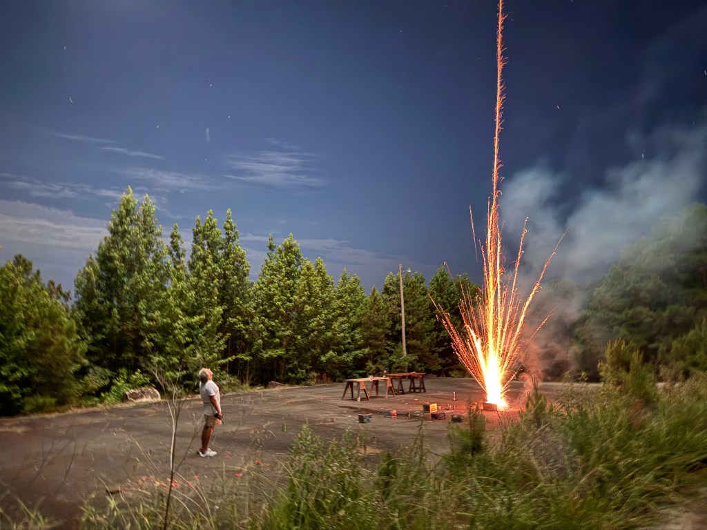 As long as the area has been rainy enough so as not to pose a fire risk, we have a little tradition of heading up to our mountain acreage we call Razorback Ridge, to set off some fireworks the day before the 4th. The fire risk was low this year, so we had fun with some new and old friends watching our own private fireworks show, complete with a finale and everything! (The finale was just setting off two of the multi shot boxes at the same time lol).