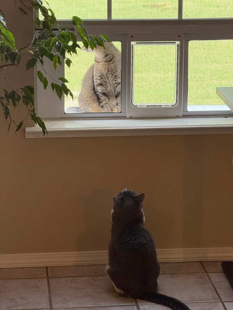 Hannah has two terrific guard cats that have been relegated to being indoor cats. However, both have freely tasted the wide open outdoors in their pasts and they very much enjoyed it. Based on their constant small wounds and skittering back to the house under duress, they must have really sucked at it from a self defense and self reliance perspective, but they insisted they enjoyed it and they kept going back.